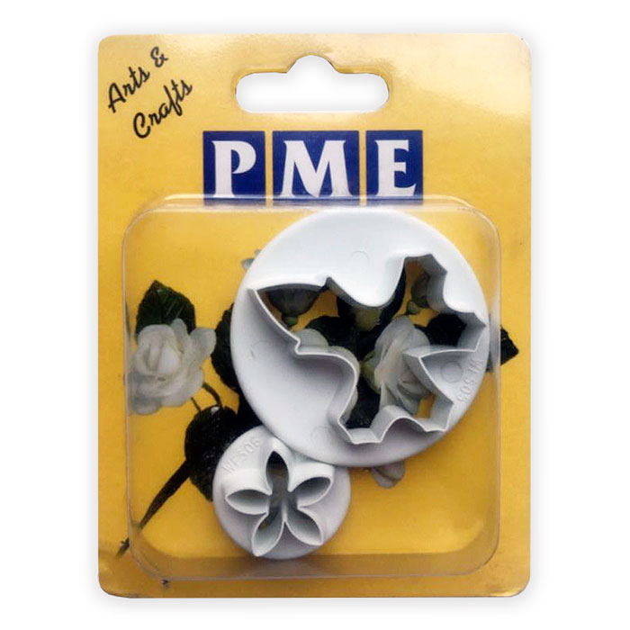 В комплект входят 2 вырубки - для листьев и цветков. По размерам получившиеся цветки идеально подходят для украшения кексов или послужат заготовками для более крупных и пышных соцветий. Очень эффектно они будут смотреться в роскошных свадебных букетах из сахарной мастики.